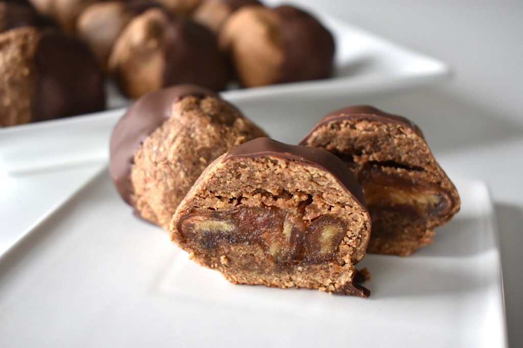 These cookies are stuffed with sweet, juicy Medjool dates. The combination of the almond cinnamon cookie, with the date, and the chocolate make for an absolutely divine and satisfying treat.