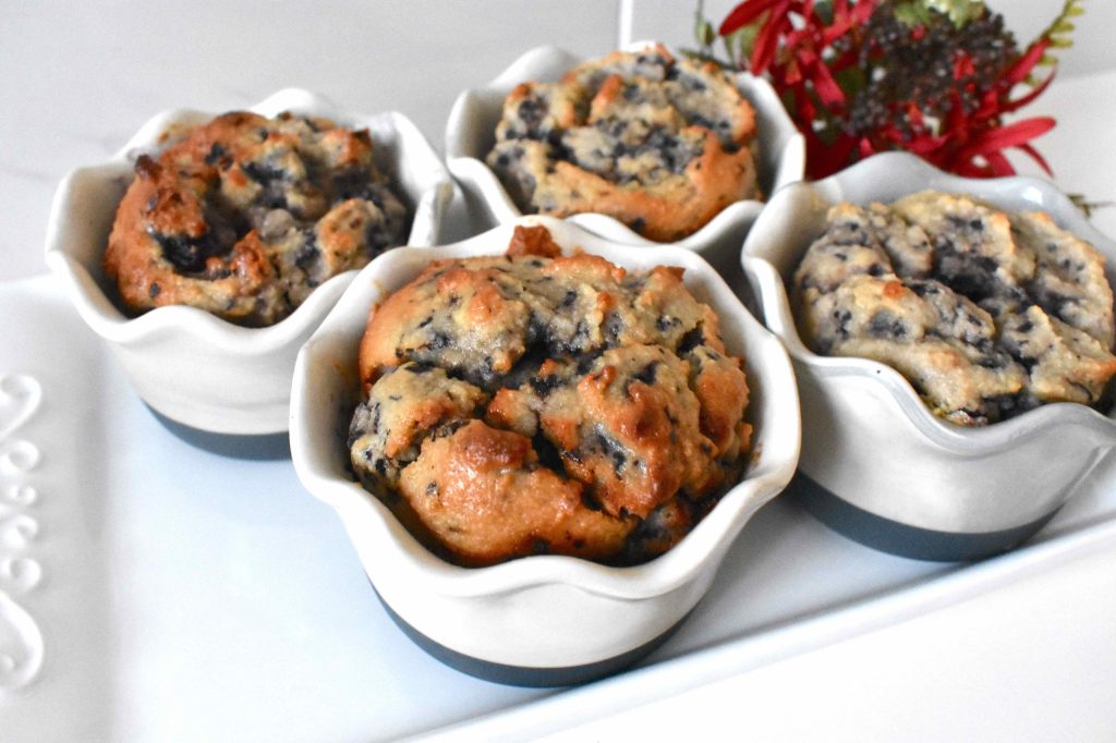 These ramekin muffins are full of juicy blueberries. They are larger than your regular muffin and make for a filling breakfast or snack. I like to eat these with a spoon because doing so keeps my fingers from getting sticky!